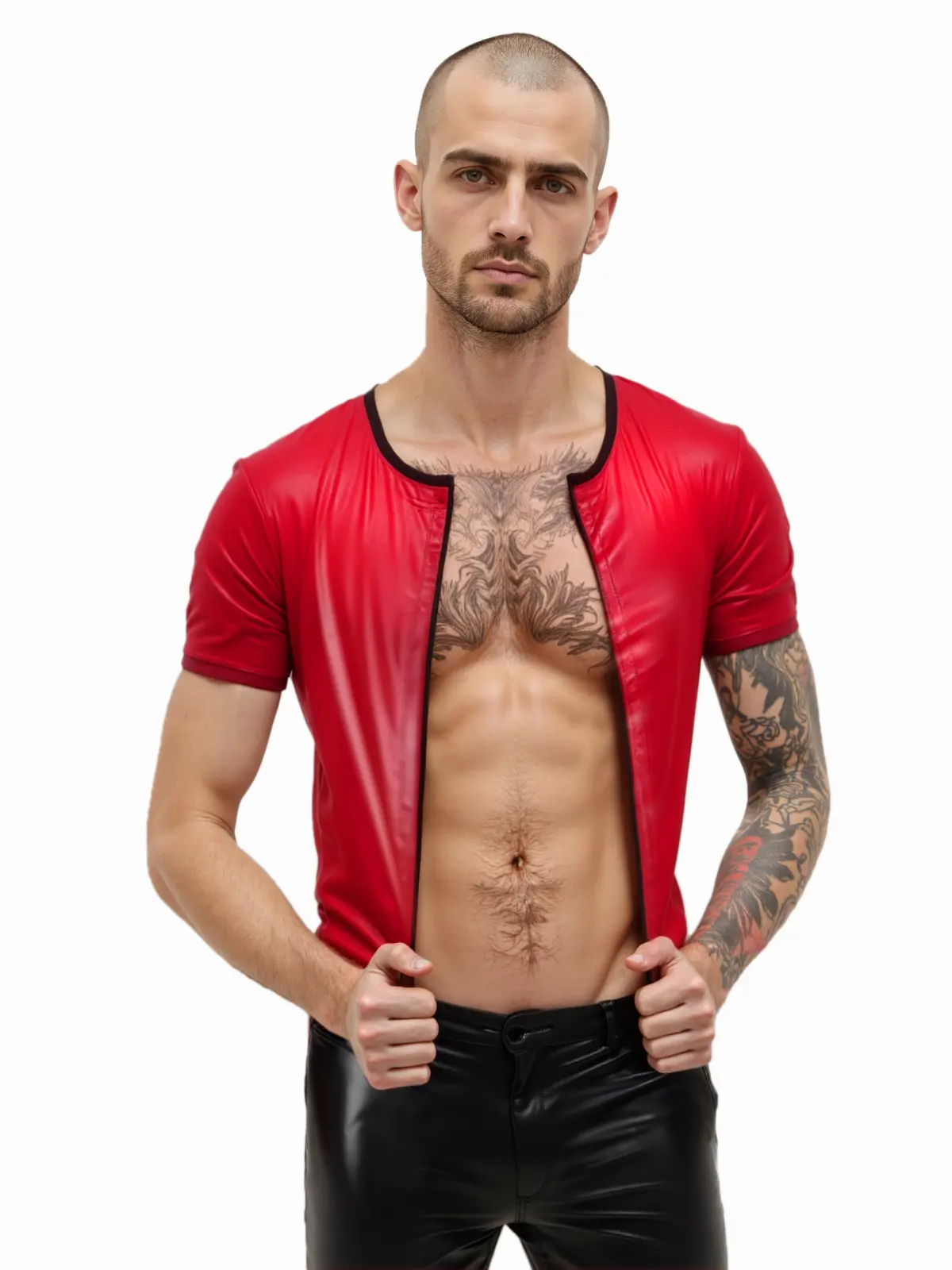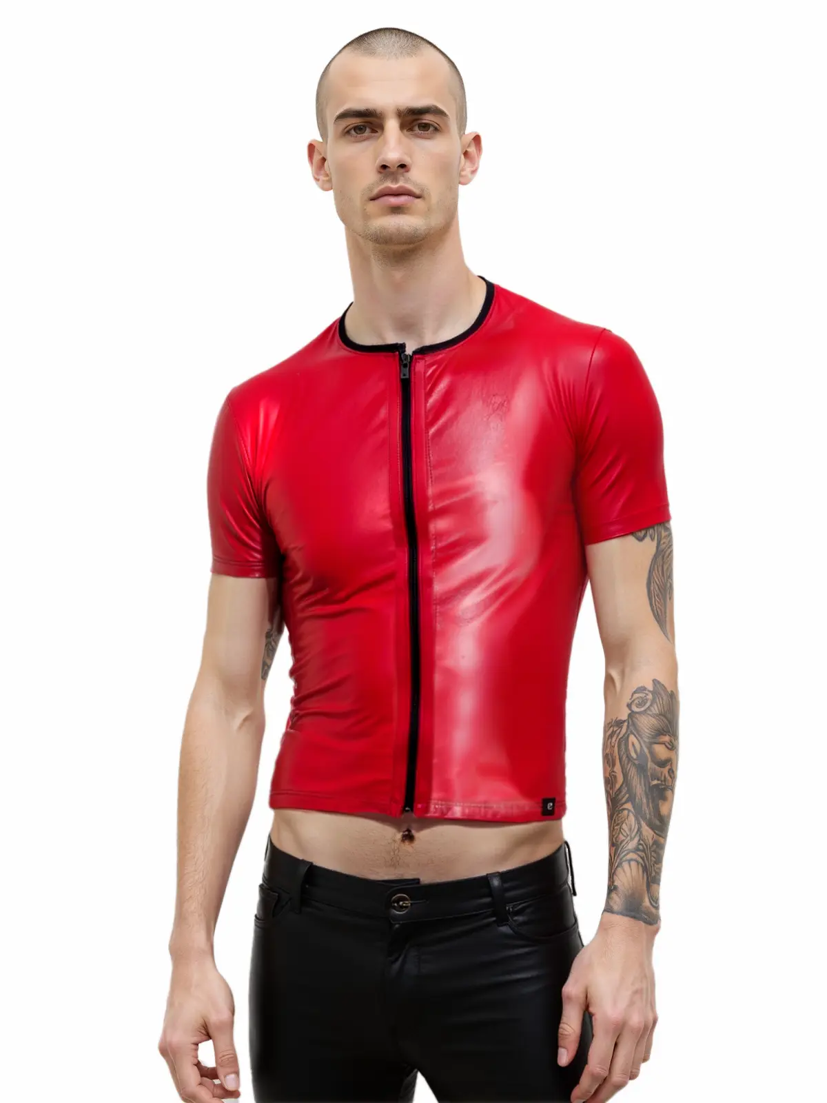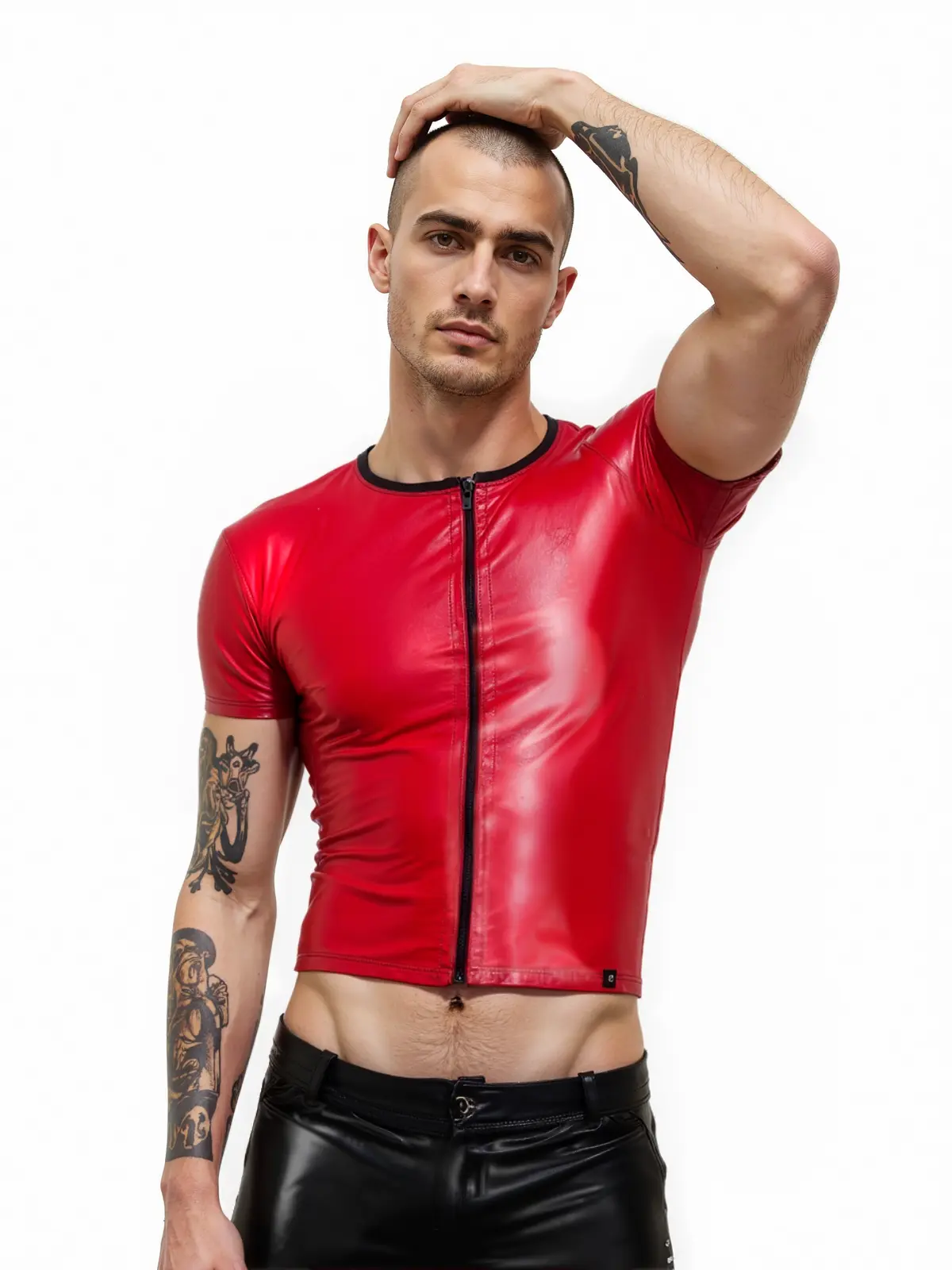 Rotes, kurzes Herren-Top mit Reißverschluss