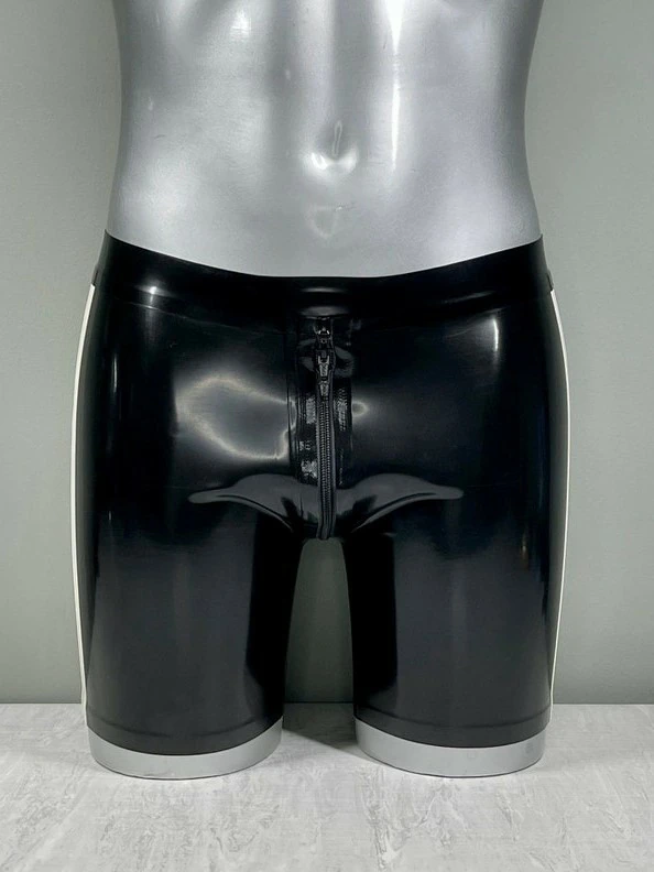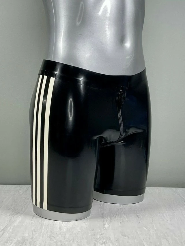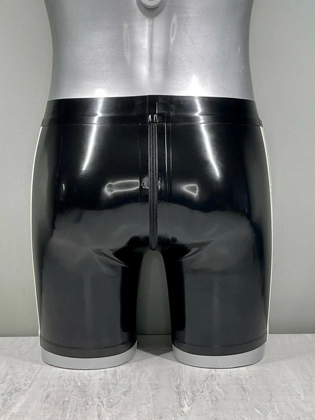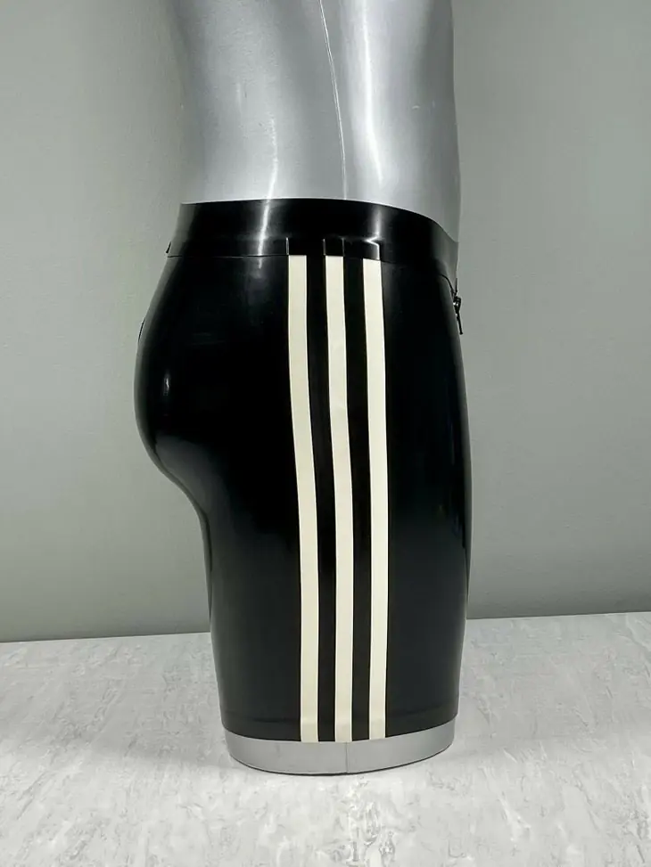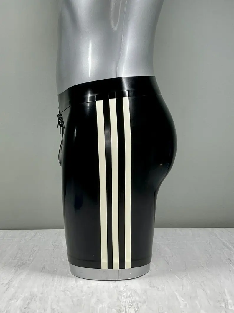 Pantalones cortos de látex negros con rayas blancas