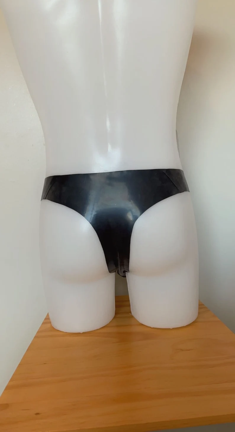 Men’s latex thong with pouch for more support. Sizing guide is in the pictures. Also available In colours red, pink and purple
