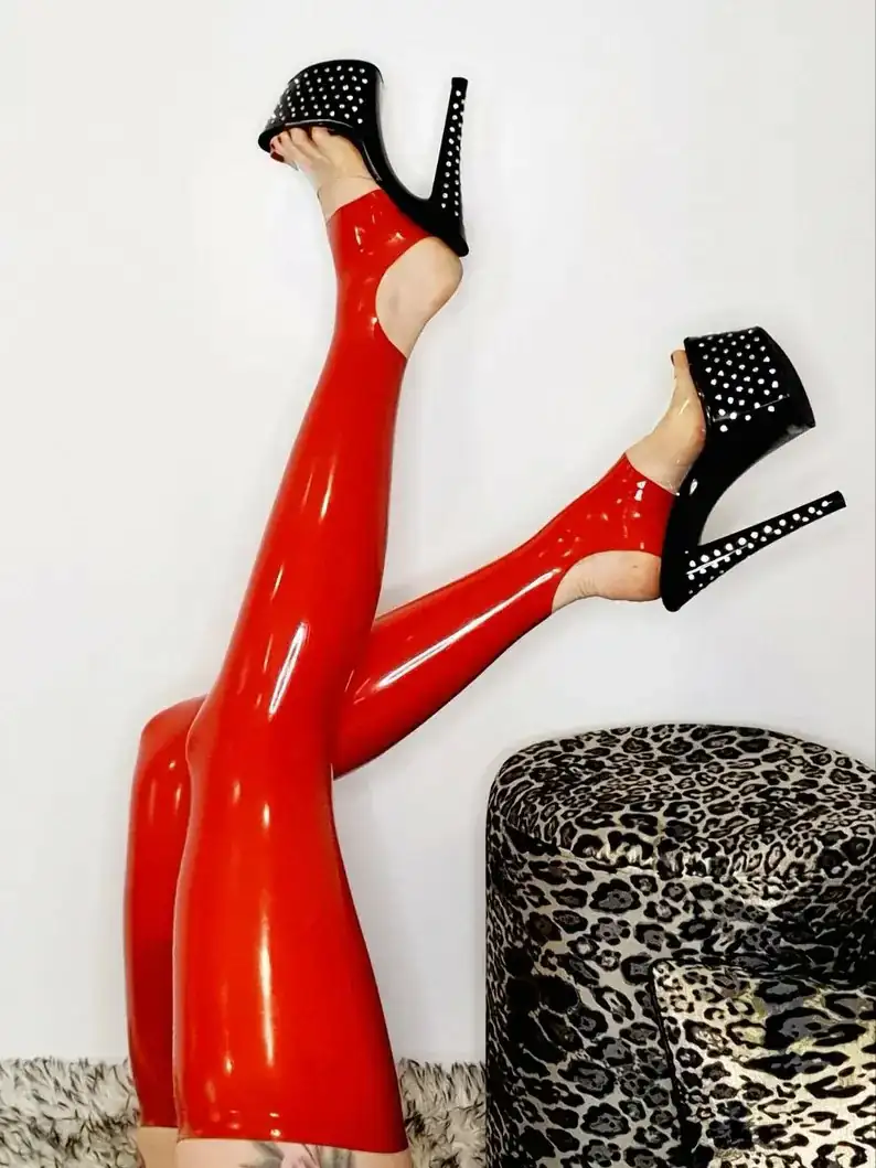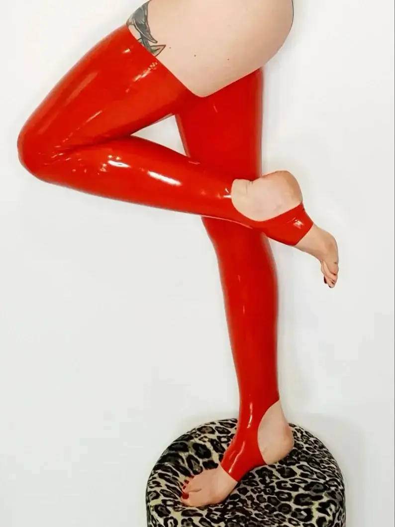 Classix Red Footless Latex Stockings