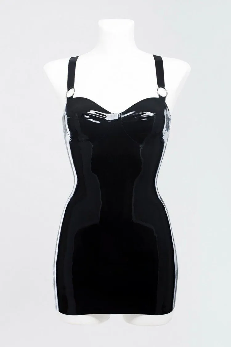 Be the first to review “Glossy Strappy Latex Dress with Metal Rings”