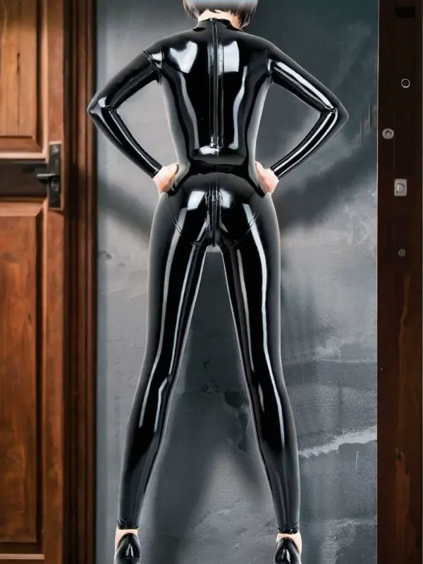Latex Classic Black Female Catsuit With Beautiful Body Cut