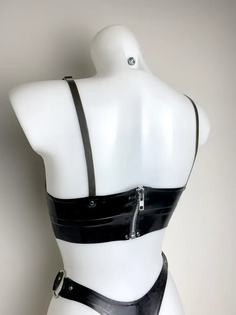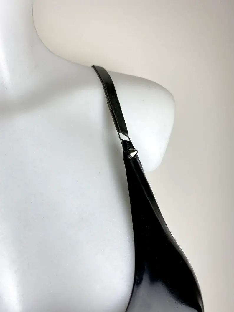 Latex bralet with adjustable straps and stud detail available in any colour.