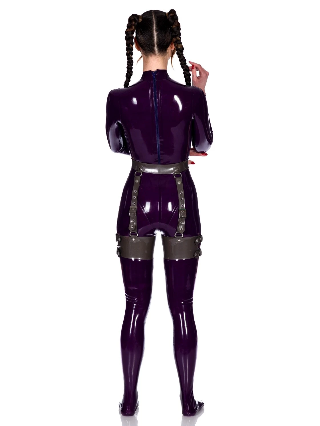 The Davina Leg Harness is the perfect accessory for any outfit. This versatile latex harness consists of a waist cinching belt with adjustable suspender straps crafted
