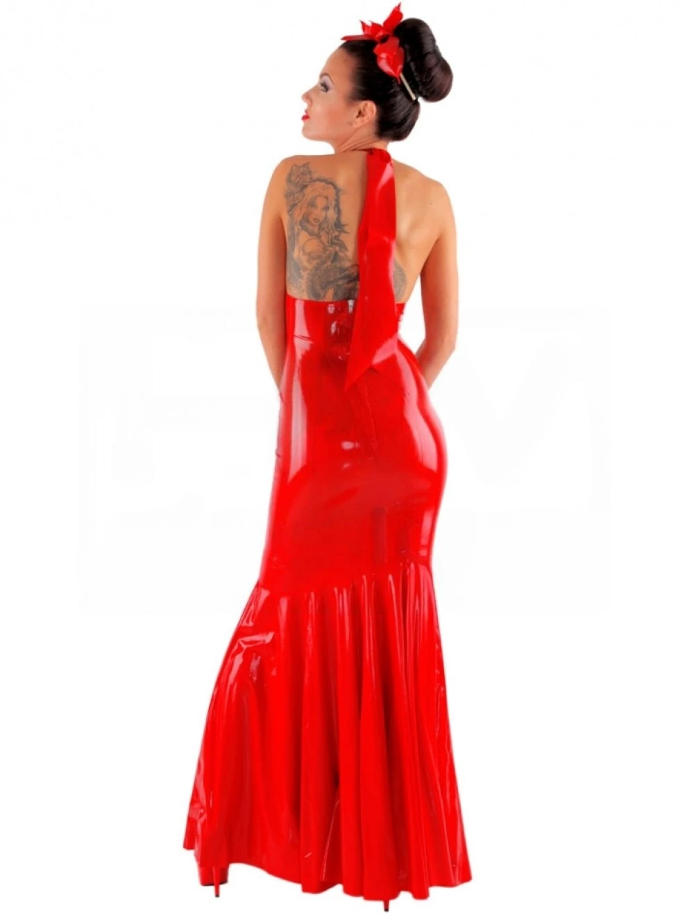 With every step it swings around your thighs and exudes its unique feeling of supple latex on the skin. The gathered bust area emphasises her femininity and ties at the neck. The naked shoulder blades will turn the head of your counterpart.