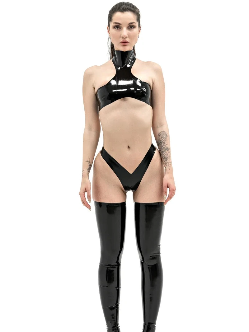 Latex High Neck Top And High-Cut Thong Pola
