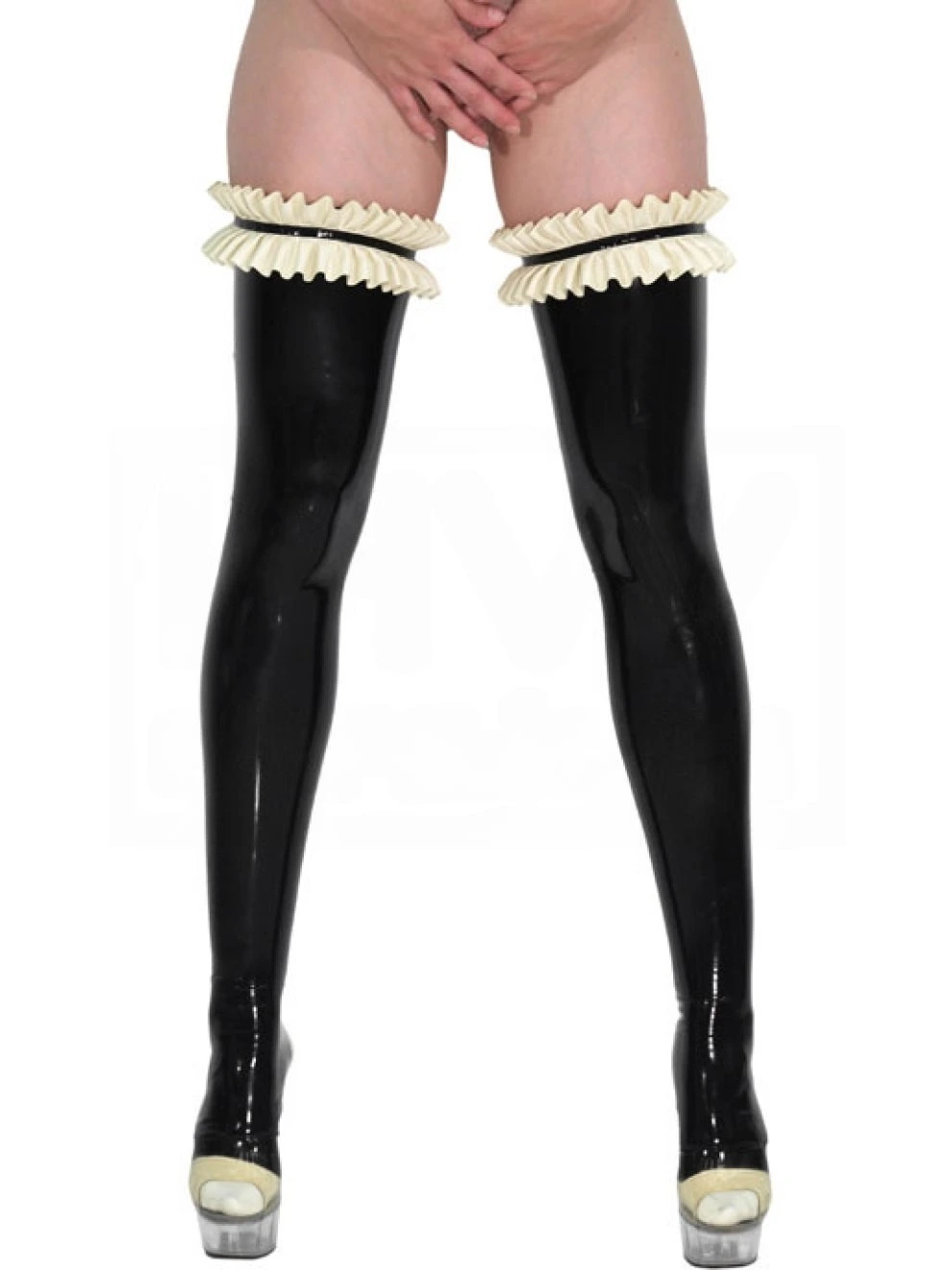 Made of thin latex, they cling to your curves like a second skin. The ruffled finish as a sexy eye-catcher leaves no doubt about who is the best maid in the house. The seam on the back visually slims the legs and guides the gaze of your master or mistress to your sweetest spots.