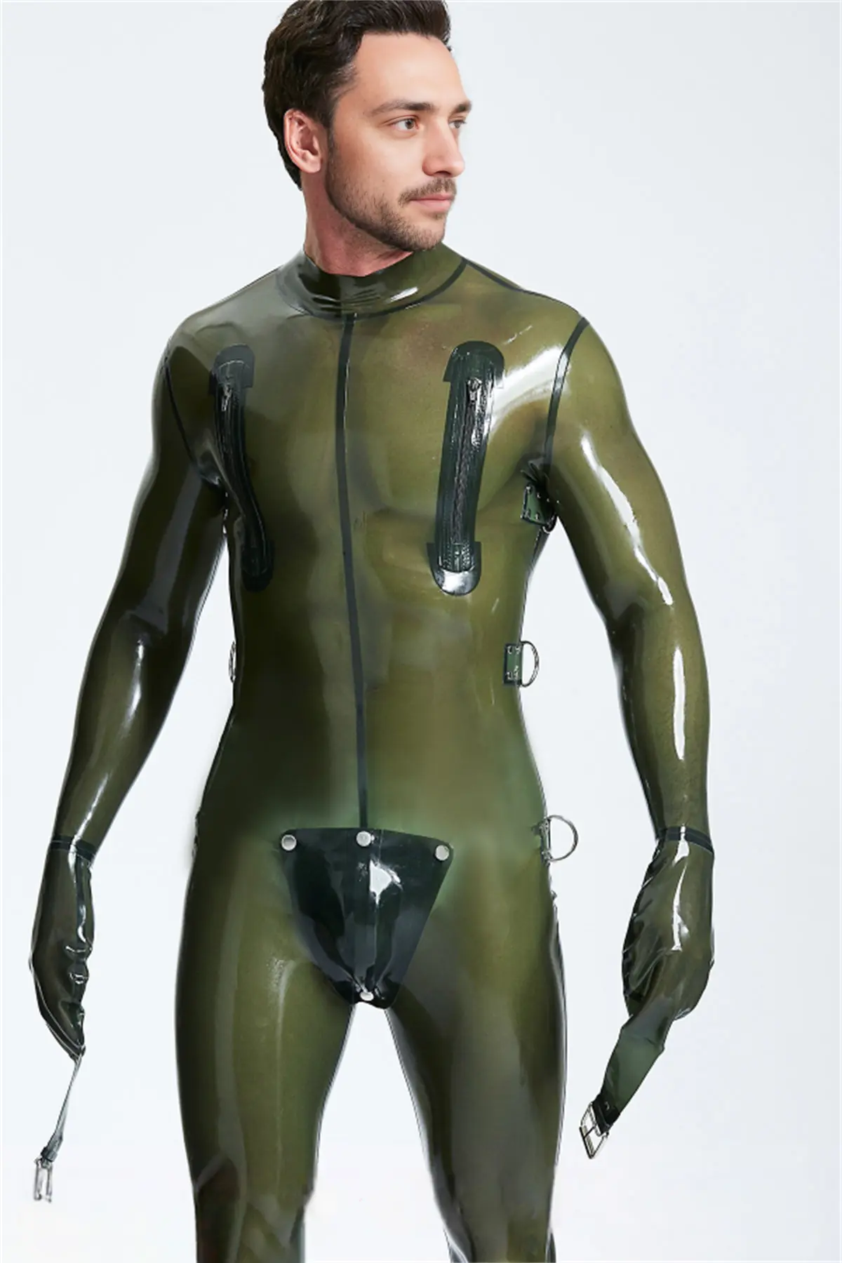 Latex Multi-Use Bondage Codpiece Catsuit with Buckles For Men
