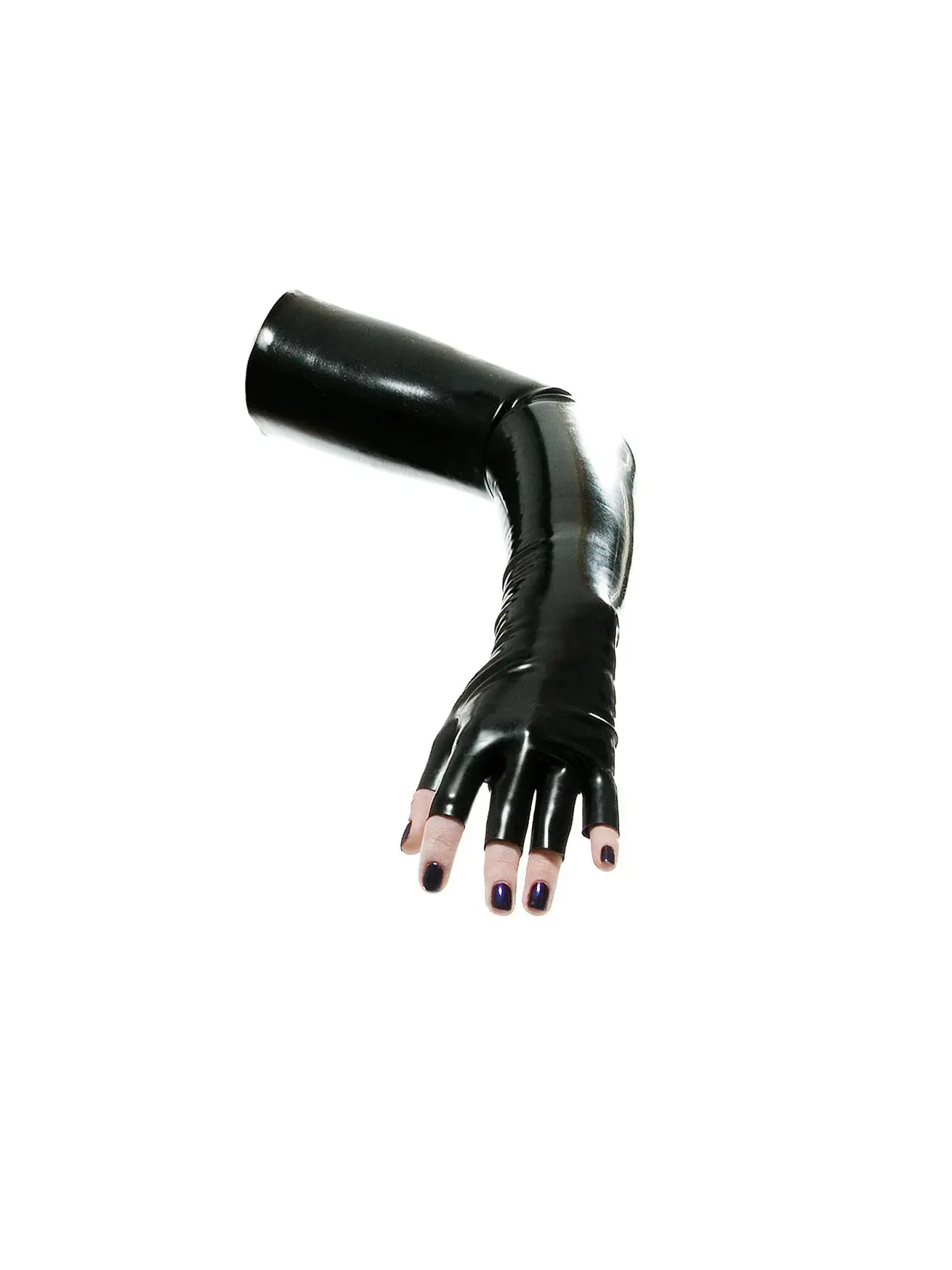 Long fingerless latex opera gloves make for a fantastic addition to any ensemble.