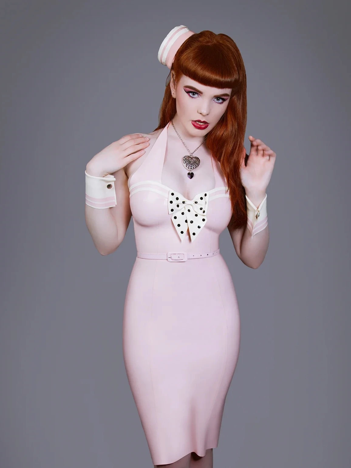 A pair of Retro Pin up style Cuffs shown in White base with Baby pink trim.