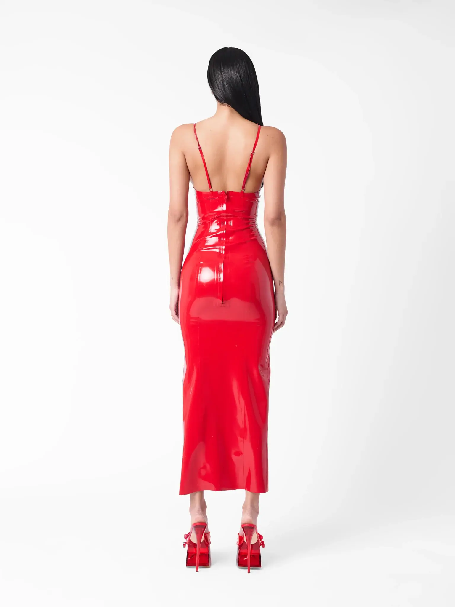Look flamin’ hot in the Roast Latex Flame Strap Midi Dress Black. With poster girl style lines to contour your figure and a flame detailed bra top, you’ll have heads turning wherever you go. Designed with skinny adjustable straps and a center back concealed zip to cater for all body types. Don’t forget to use the latex wipe to give it that extra shine.