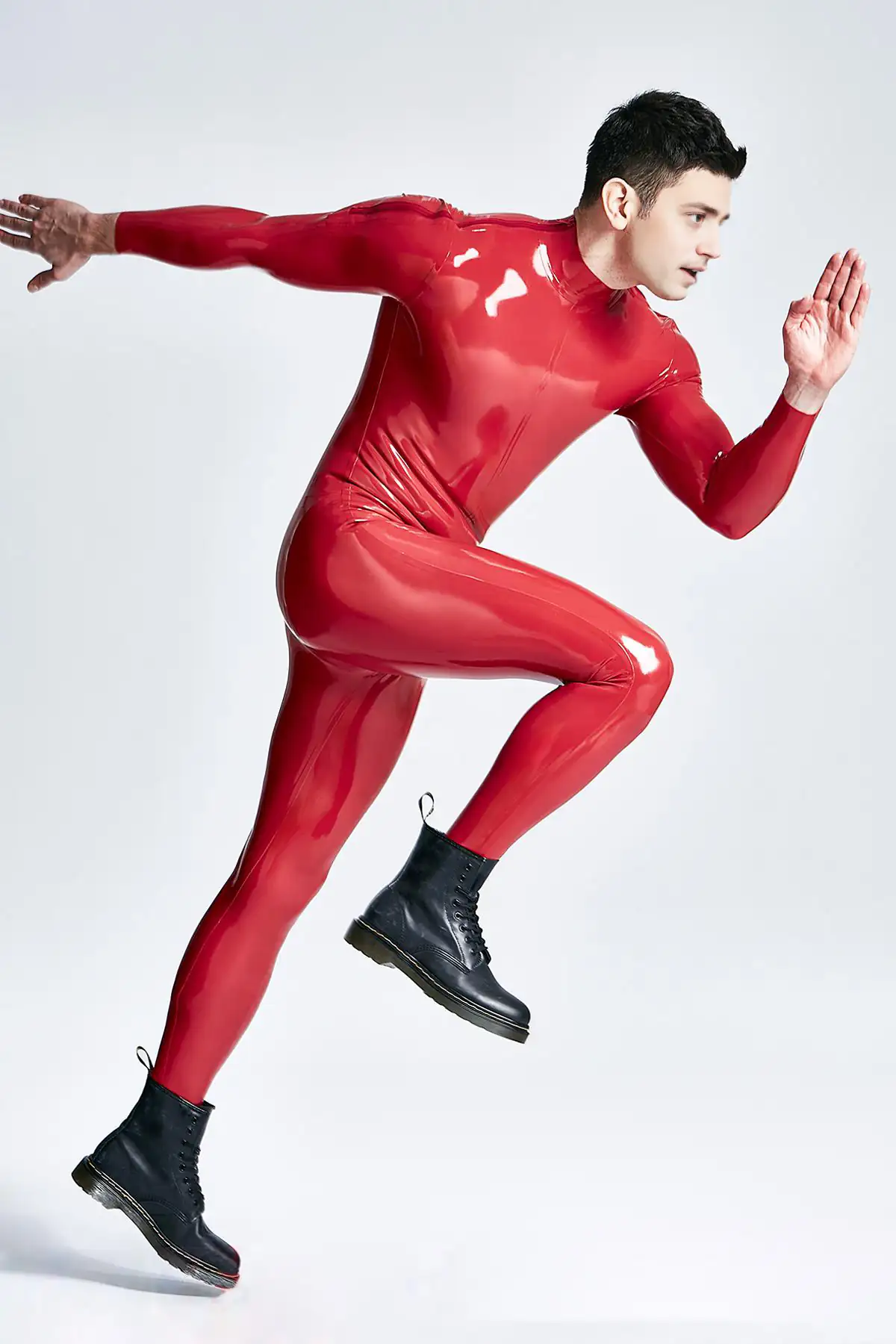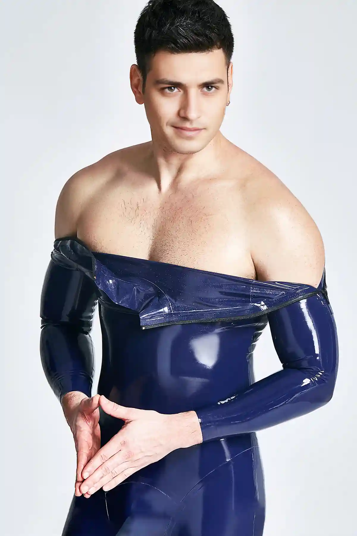 Latex Shoulder Zipper Long Sleeves Male Suit