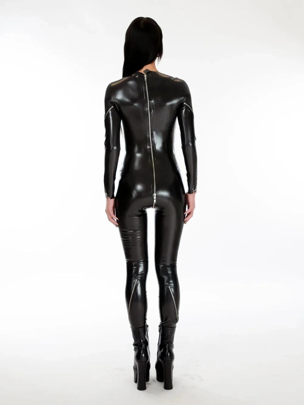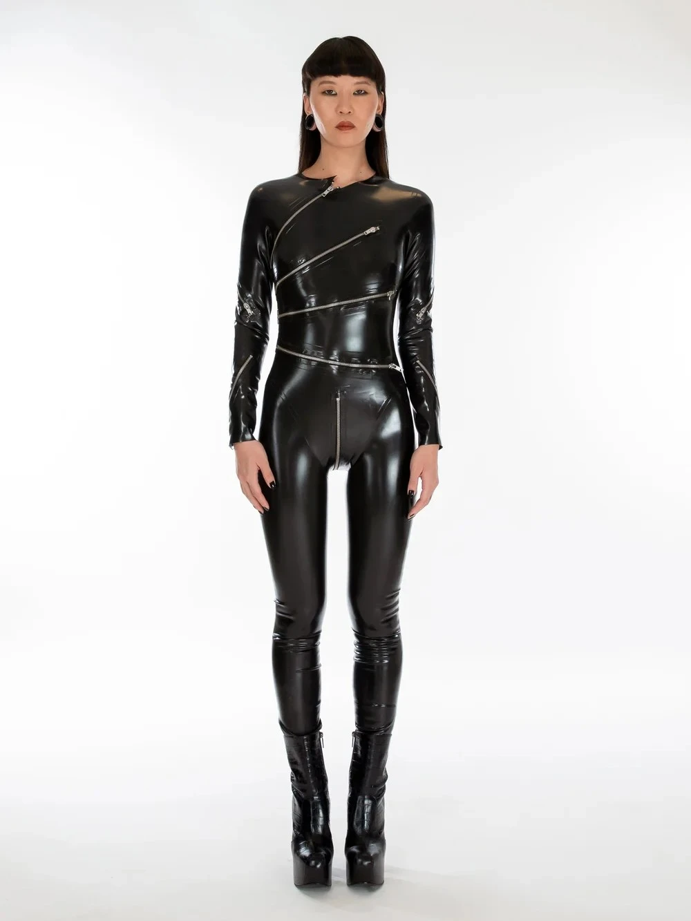 Unapologetically bold, the Bromley Catsuit redefines seduction through design. Crafted from premium semi-transparent latex, it features eleven specially engineered zips that bring versatility, allure, and structure to every curve. Each zip is positioned with precision ?? revealing just enough to intrigue, yet keeping its secrets perfectly hidden.
