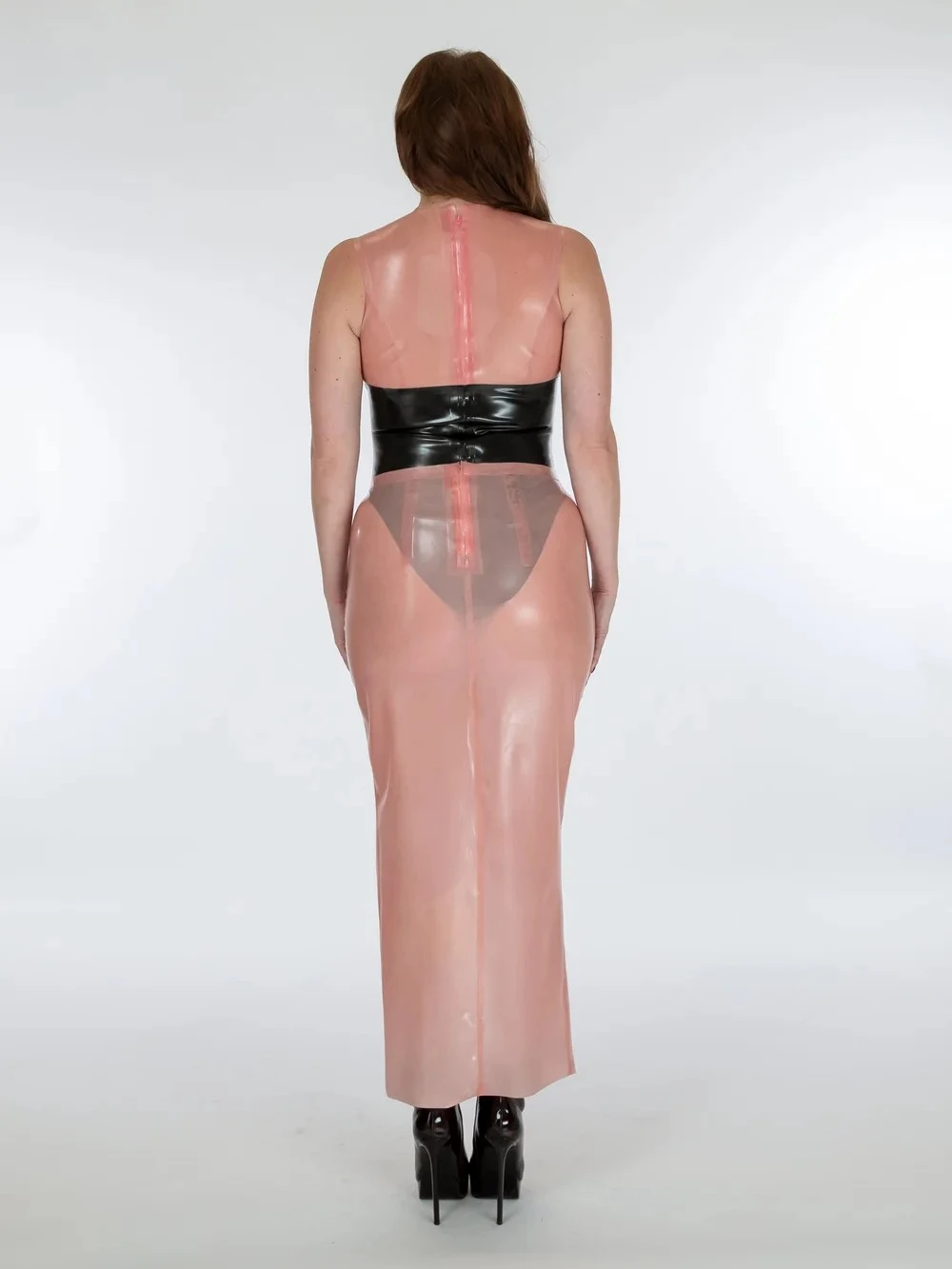 The Kimberly Latex Bodysuit captures the perfect balance between bold contrast and refined design. Crafted from premium latex, this two-tone piece features a sleek black lower section that flows seamlessly into a semi-transparent upper, creating a captivating play of opacity and allure.