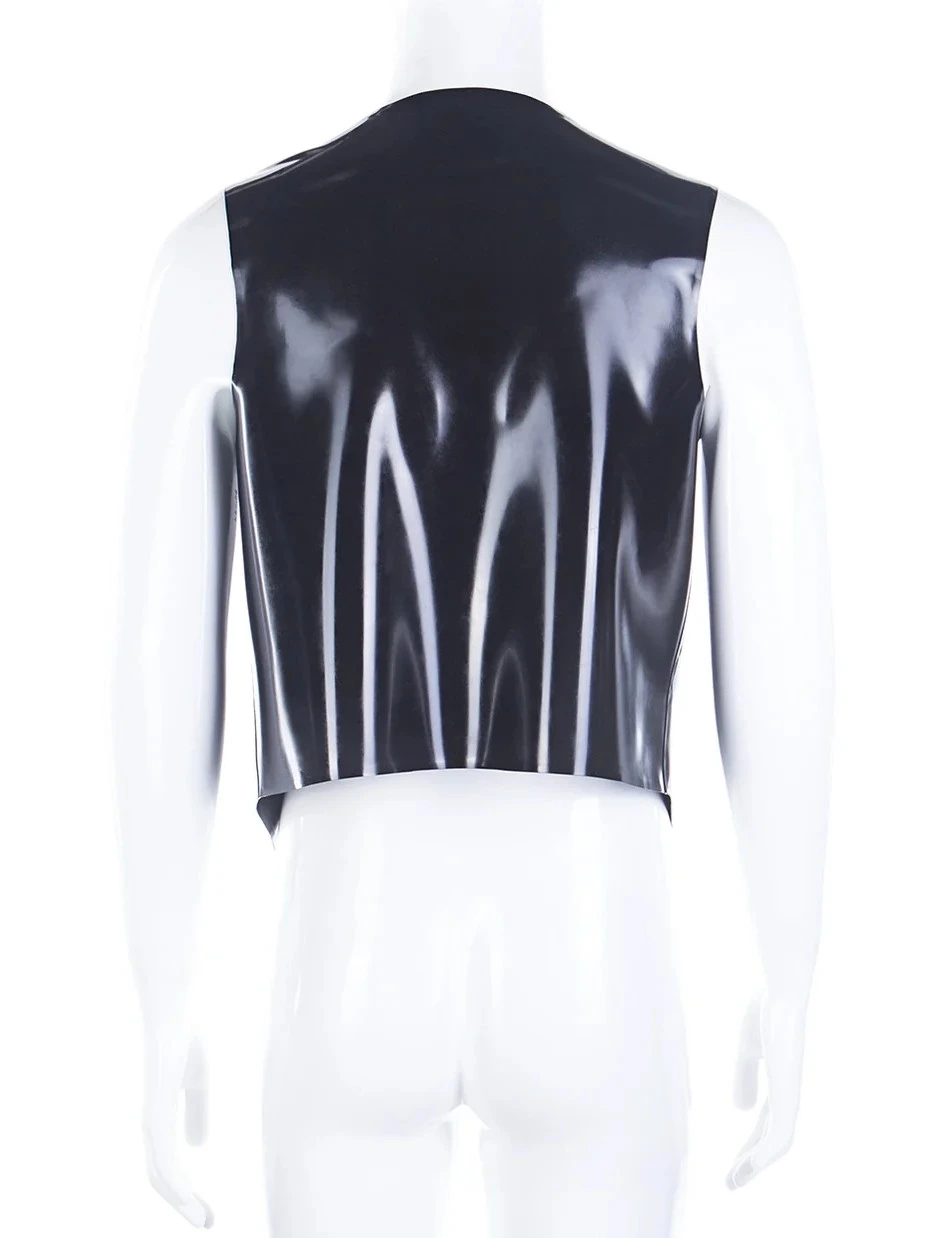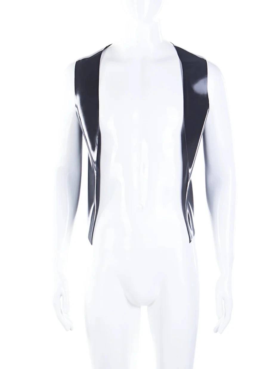 Latex vest with a narrow cut through the chest to show off your nipples, made in thicker grade latex.