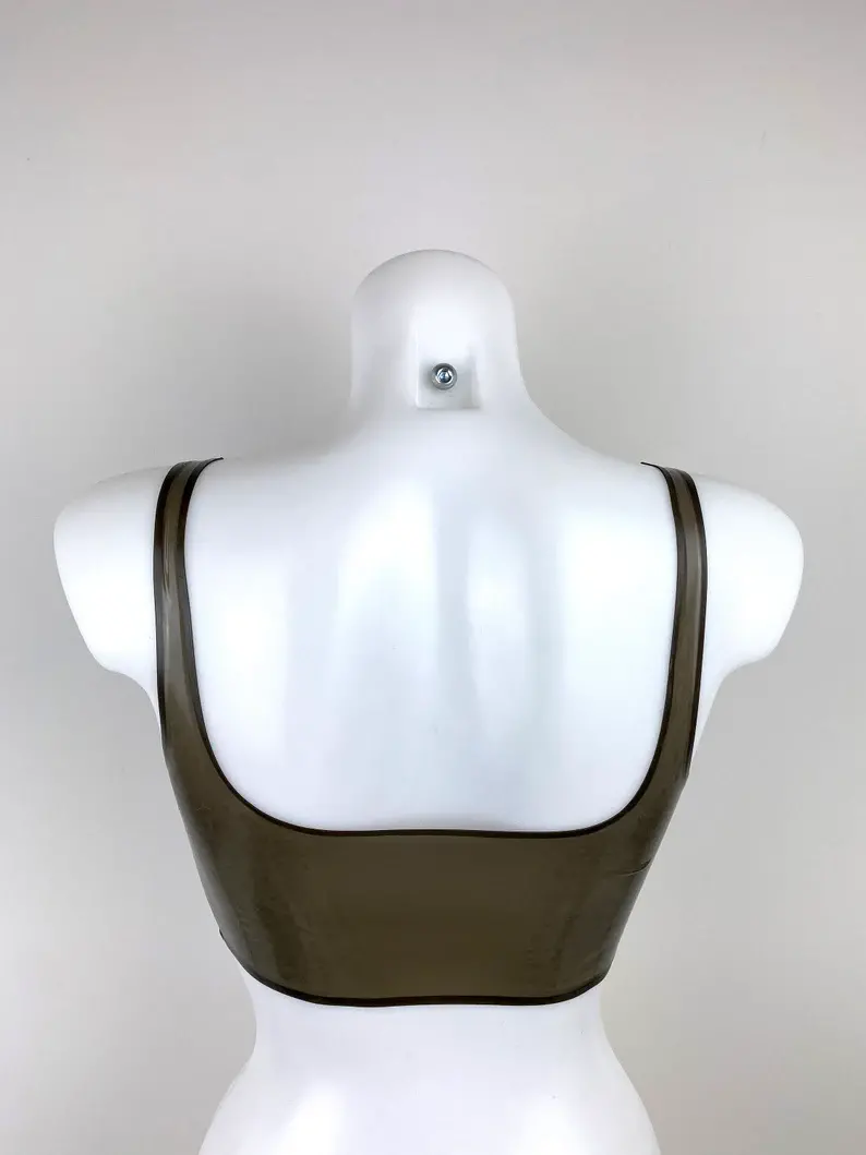 Latex crop top scoop neck and low back.