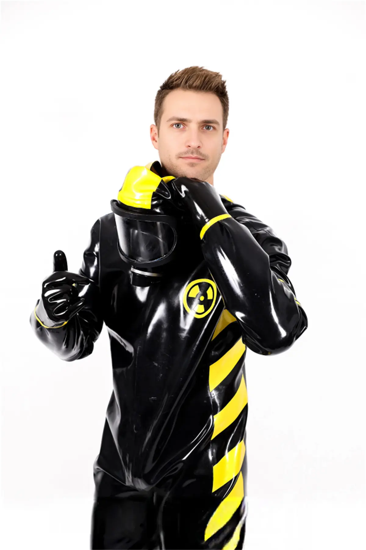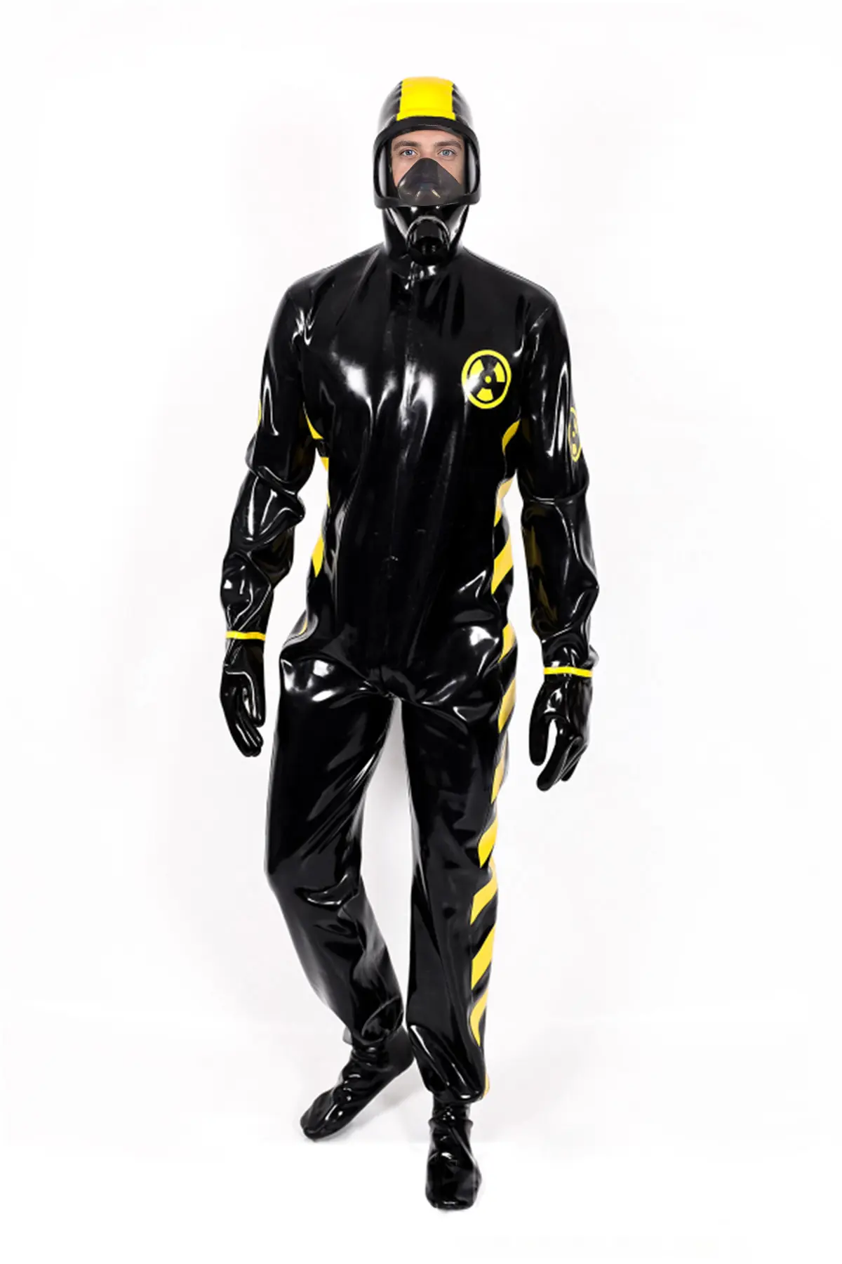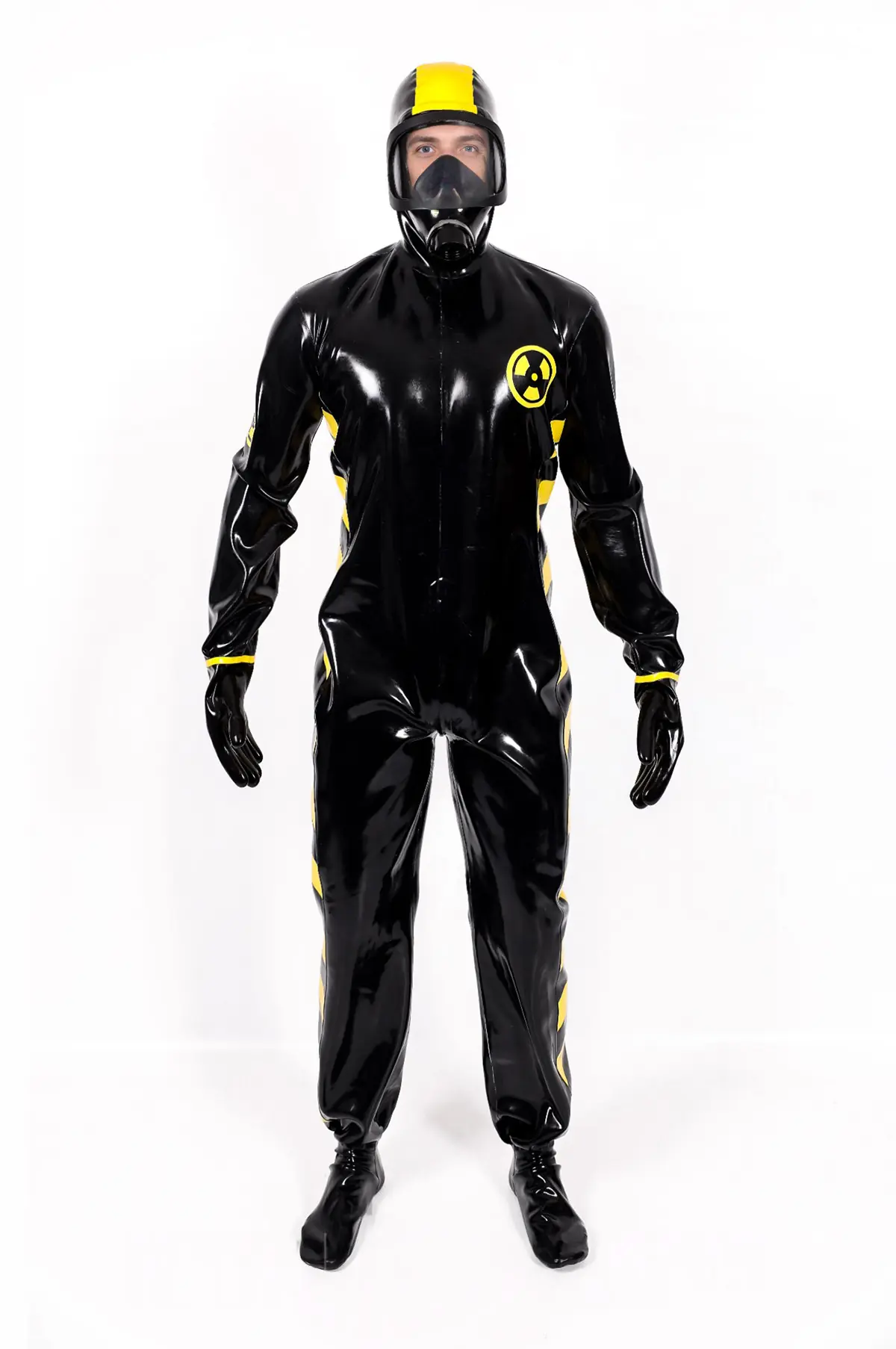 - Haz Mat style biohazard protective suit in thick 1mm latex;