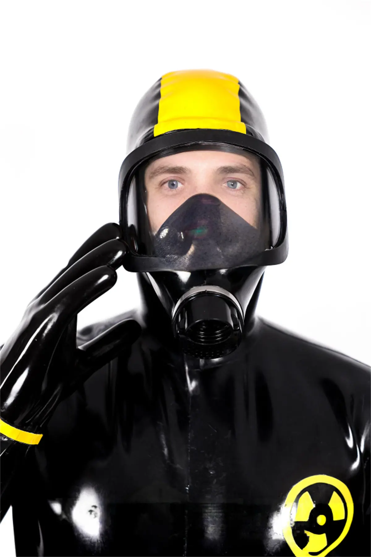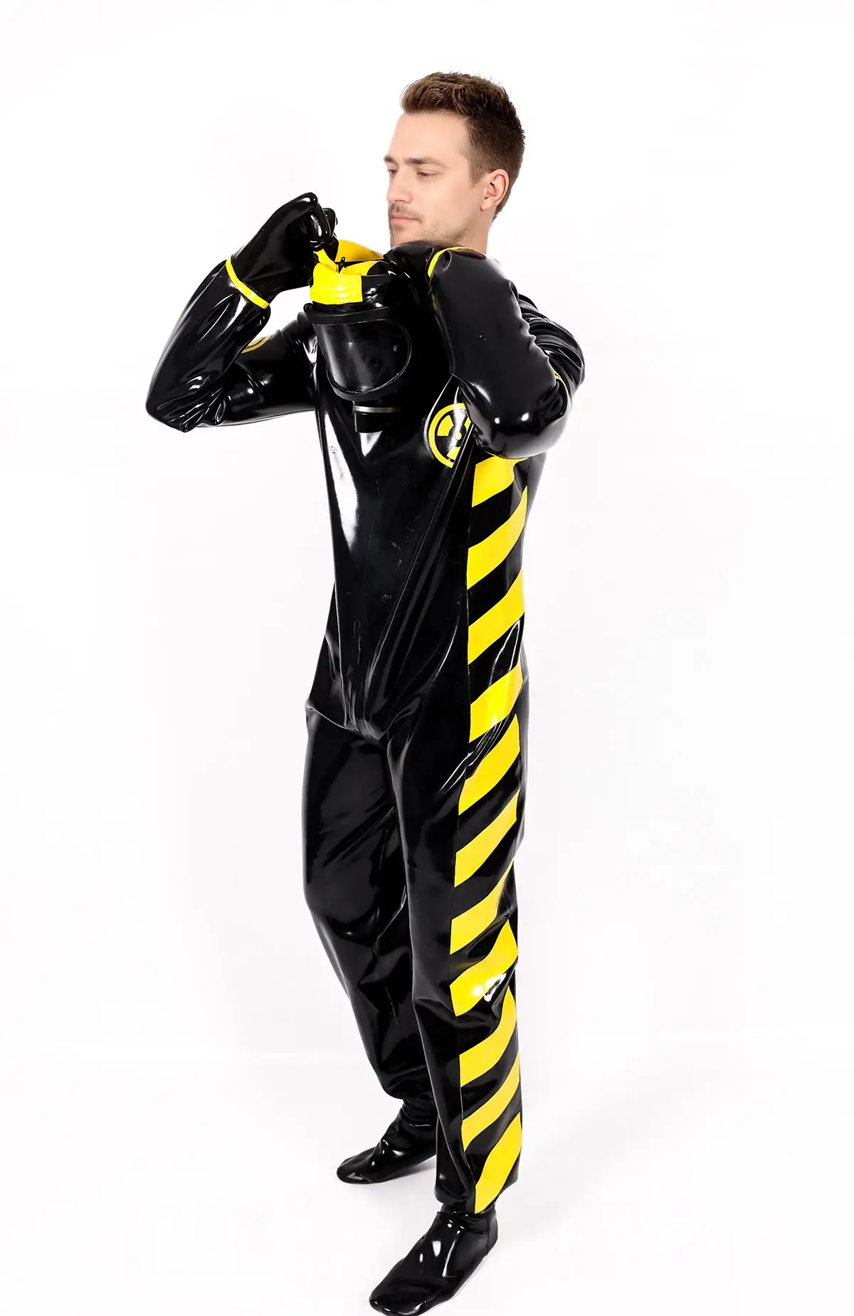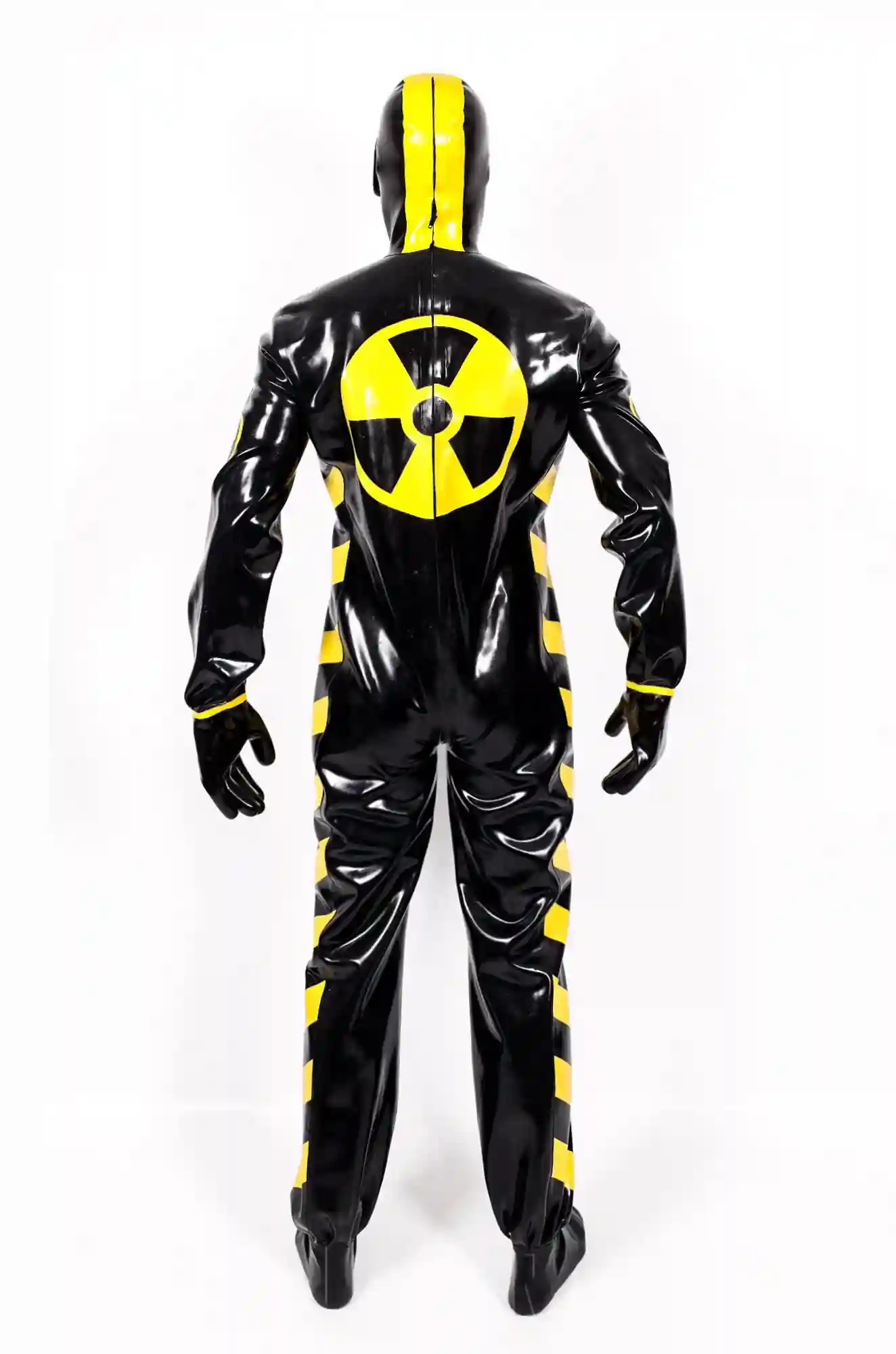 - Haz Mat style biohazard protective suit in thick 1mm latex;
