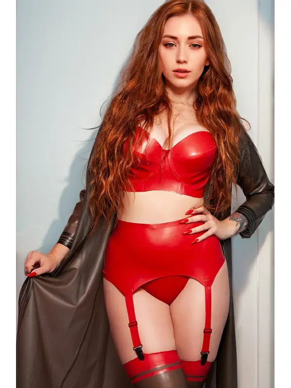 Sexy Red Latex Bra with Garter Belt Set